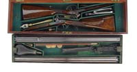 WONDERFUL ELEPHANT SKIN LEG-O-MUTTON TAKEDOWN SHOTGUN CASE THAT BELONGED TO ANNIE OAKLEY.