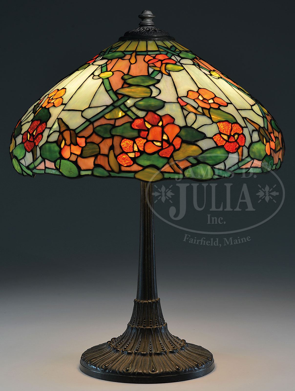 TIFFANY STUDIOS POINSETTIA TABLE LAMP.