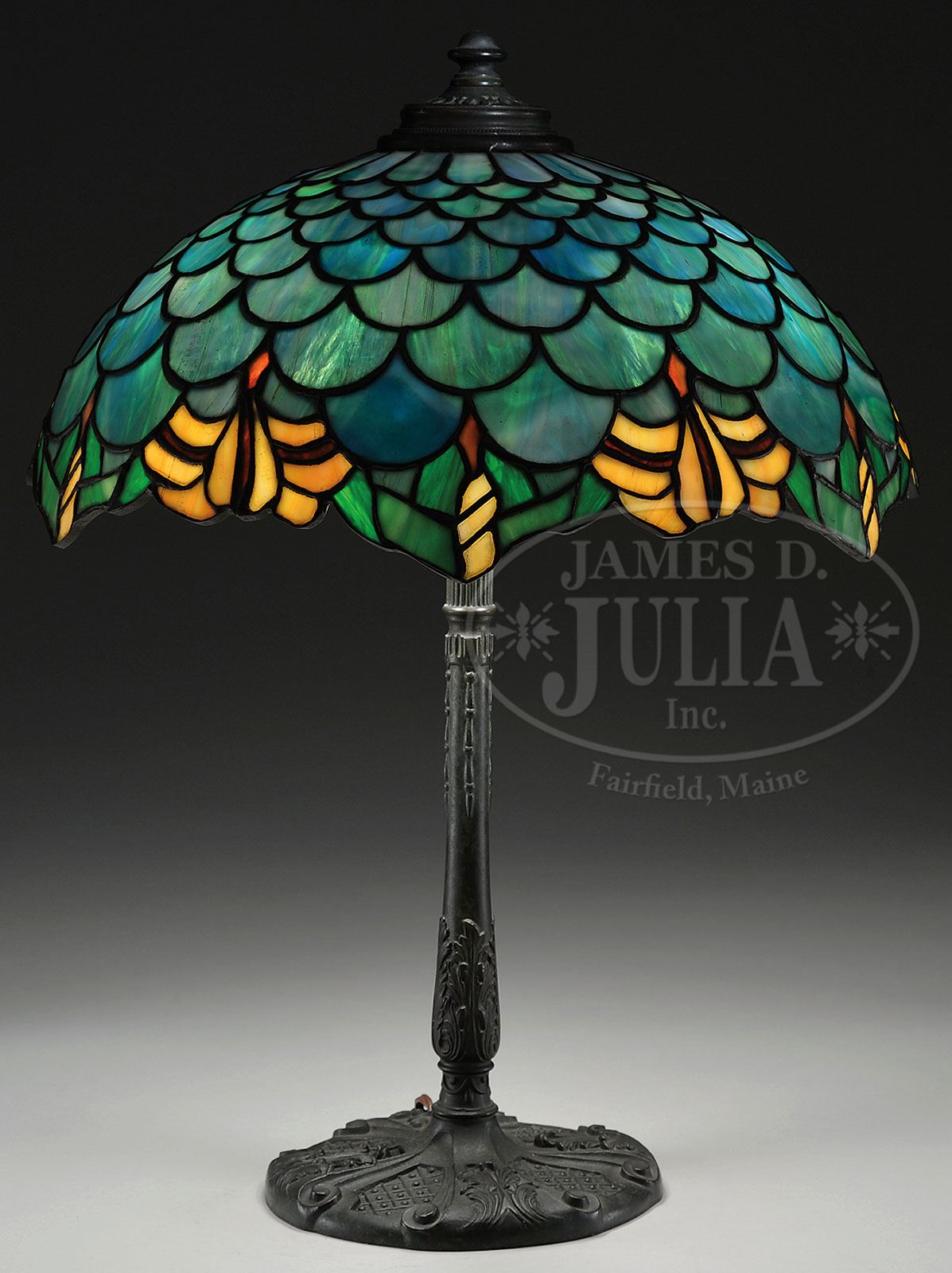 TIFFANY STUDIOS PEACOCK TABLE LAMP.