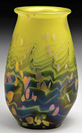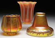 LOT OF GOLD QUEZAL ART GLASS SHADES.