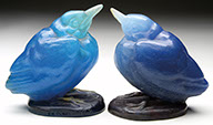 PAIR OF QUEZAL PULLED FEATHER SHADES.