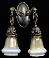 PAIR TIFFANY STUDIOS ACORN CEILING FIXTURES.