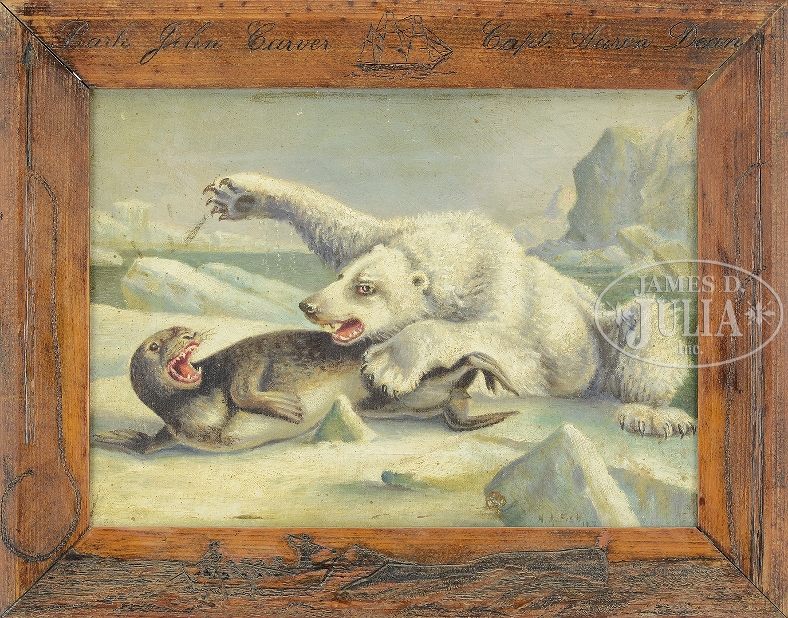Lot 1652 FOLK ART OIL ON CANVAS OF POLAR BEAR ATTACKING SEAL. Est: $500-$700 SOLD: $5,036.25 |