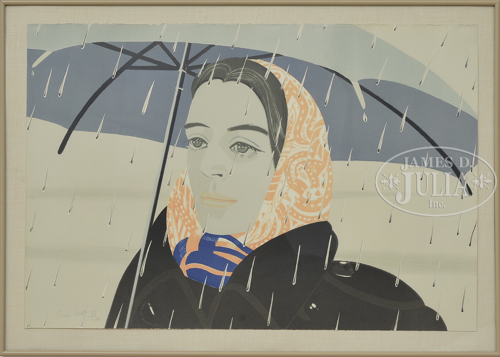 Lot 1002 ALEX KATZ (American, 1927- ) “BLUE UMBRELLA” Est: $3,000-$5,000 SOLD: $3,851.25 |