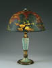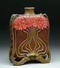 LAMARTINE PILLOW VASE. Nice decorated vase has brown enamel tree with white leaves, green meadow and hazy purple mountains in the background. Signed on backside with engraved signature “Lamartine”. SIZE: 1-7/8 in. t x 3 in. w. CONDITION: Very good to excellent. 5-61092 (500-1,000)