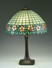 GALLE ENAMELED VASE. Heavily enameled floral decoration with applied beads on a green mottled glass. Signed on base “Cristallerie Emile Galle Nancy”. SIZE: 13-3/4 in. t. CONDITION: Large crack extends entire length of vase. Repaired with six staples. 5-60655 (200-400)