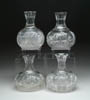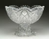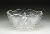 SIX CRYSTAL ROSE BOWLS. Lot consists of three Fostoria Baroque rose bowls in crystal, topaz and Azure blue. Two are Orrefors; one engraved with a butterfly the other with a bird and one pressed glass rose bowl in a D.Q. pattern and is engraved “Isabella Saratoga 1891”. Five are pictured in the “Collectible Glass Rose Bowls” by Johanna Billings fig. 415 pg. 126 and fig. 437 pg. 135. SIZE: Range from 2-1/2 in. to 3-1/2 in. dia. CONDITION: One of the Orrefors rose bowls has interior staining, the pressed glass rose bowl has a chip on the foot, the remaining are very good to excellent. Collection of Johanna & Sean Billings 5-60752 (200-400)