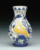 MT. WASHINGTON BURMESE VASE. Beautiful Mt. Washington vase is hand decorated white and yellow floral clusters and vines. SIZE: 11-3/4 in. t. CONDITION: Very good to excellent. 5-61190 (800-1,200)