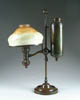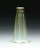 LEGRAS CAMEO VASE. Scenic cameo and enamel decoration of trees with leaves in colors of green and brown on a green, yellow and blue mottled background. Signed on side of vase “Legras”. Metal gold washed base. SIZE: 6-1/2 in. t. CONDITION: Metal base has dent, otherwise very good to excellent. 5-60629 (600-800)