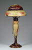 LAMARTINE VASE. Very nice Lamartine vase has cameo and enameled scenic decoration of trees, meadow and stream around steep hillsides. All done against a lovely pink striated background. Signed on the side with engraved signature “Lamartine”. SIZE: 4-1/2 in. t. CONDITION: Very good to excellent. 5-61091 (1,000-1,500)