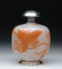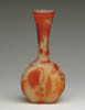 GALLE CAMEO CABINET VASE. Cameo decoration is of flower blossoms and leaves in colors of orange over frosted background. Signed on side of vase “Galle”. SIZE: 3-7/8 in. t. CONDITION: Chip on the foot of the vase, otherwise very good to excellent. 5-60632 (400-600)