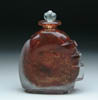 LEVERRE FRANCAIS ATOMIZER. Nice Art Deco atomizer has stylized flowers and leaves in a tortoise shell glass against a frosted yellow background. Signed on the underside “Leverre Francais”. Bottle is topped with original atomizer assembly. SIZE: 6-1/2 in. t. CONDITION: Missing the atomizer bulb, otherwise very good to excellent. 5-61231 (600-800)