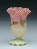 BURMESE DECORATED VASE. Delicate Burmese vase has fluted rim and nice enameled floral decoration. SIZE: 4-1/2 in. t. CONDITION: Very good to excellent. 5-61236 (500-700)
