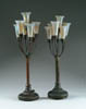 FIVE ITALIAN ART GLASS ITEMS. Lot consists of three latticinio and ribbon bowls, a latticinio and ribbon jack in the pulpit vase and a rose bowl. Rose bowl is pictured in the “Collectible Glass Rose Bowls” by Johanna Billings fig. 519 pg. 161. Accompanying lot is an autographed copy of “Collectible Glass Rose Bowls” by Johanna Billings with Sean Billings. CONDITION: Very good to excellent. Collection of Johanna & Sean Billings 5-60983 (400-600)