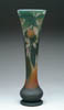 GALLE THISTLE VASE. Nice little cabinet vase has rich green thistle cameo design against a frosted creamy background with hints of pink. Signed on the side in cameo “Galle”. SIZE: 3-3/4 in. t. CONDITION: Very good to excellent. Collection of Dr. C. & Margaret Chastain 5-61431 (400-600)