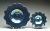 SIX CRYSTAL ROSE BOWLS. Lot consists of a large zipper pattern rose bowl with a box pleated top in clear crystal, a clear crystal rose bowl in zipper pattern with a crimped top, three miniature rose bowls in the zipper pattern in colors of amber, blue and clear and a miniature clear threaded rose bowl in the raindrop pattern. Five are pictured in the “Collectible Glass Rose Bowls” by Johanna Billings fig. 234 pg. 75, fig. 226 pg. 74, fig. 232 pg. 75, fig. 225 pg. 73 and fig. 227 pg. 74. Accompanying lot is an autographed copy of “Collectible Glass Rose Bowls” by Johanna Billings with Sean Billings. SIZE: Range from 2-3/4 in. to 5 in. dia. CONDITION: Very good to excellent. Collection of Johanna & Sean Billings 5-60893, 5-60970 (500-700)