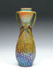 DAUM NANCY DECO VASE. Daum Deco vase features mottled glass in colors of green, yellow and pink with two applied green handles, all in acid finish. Signed on side of vase “Daum Nancy”. SIZE: 14-1/2 in. t. CONDITION: Very good to excellent. 5-60623 (1,000-1,500)