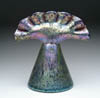LARGE FENTON ROSE BOWL. Spectacular Fenton rose bowl features translucent blue glass with white pulled feather decoration. Designed by Robert Barber and numbered 245 in a Limited Edition of 700. Accompanied with certificate by Fenton and dated 1975. Fully signed on underside with Fenton acid etched insignia dated 1975 and artist signed. Original Fenton paper label on the front of the rose bowl. Similar example seen on the cover of the “Collectible Glass Rose Bowls” by Johanna Billings. Accompanying lot is an autographed copy of “Collectible Glass Rose Bowls” by Johanna Billings with Sean Billings. SIZE: 8 in. t. CONDITION: Very good to excellent. Collection of Johanna & Sean Billings 5-60917 (400-600)