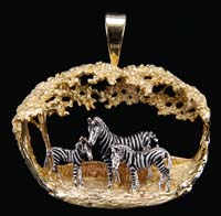 QUEZAL CHANDELIER. Interesting Quezal chandelier is cast brass with four dolphin arms which support the Quezal shades. Each shade has a beautiful yellow lightly iridescent King Tut design at the top, giving way to a yellow and gold iridescent zipper design at the skirt. The zipper design is against a creamy background. Shades are unsigned but most assuredly Quezal. SIZE: Fixture 8″ t with shades. Overall with chain and cap 30″ t. CONDITION: Good with an old tight hairline to one shade with some minor discoloration to metal. 8-87592 (1,000-1,500)