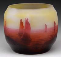 D’ARGENTAL CAMEO VASE. Pretty red marine scene on yellow ground. Cameo signature on the side “D’Argental”. SIZE: 3-1/2” t. CONDITION: Very good to excellent. 5-68507 (1,300-1,600)
