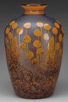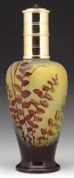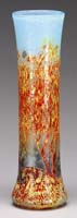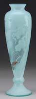 D’ARGENTAL MONUMENTAL CAMEO VASE. Smoke gray colored irises on a shaded peach background. Nice workmanship. Cameo signature on the side “D’Argental” with the Cross of Lorraine. SIZE: 17-3/4” t. CONDITION: Very good to excellent. 5-68554 (3,500-4,500)
