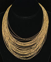 Loetz Titania vase has silvery blue dragged loop design against a yellow background. The vase has three pinched sides and tri-corn lip and is further decorated with floral sterling silver overlay with an open work band around the foot with rose stems extending up the vase to a spray of roses around the lip. Unsigned. SIZE: 10″ t. CONDITION: Very good to excellent. 5-69220 (6,000-8,000) – Lot 2006