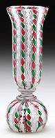 Desire Christian vase has red cameo, berries, stems and leaves with two cameo butterflies hovering above. The cameo decoration has gilded highlights and is set against a translucent green background. Signed on the underside “D. Christian Meisenthal”. SIZE: 7″ t. PROVENANCE: James Boma Collection. CONDITION: Very good to excellent with some minor acid burns on side of foot. 5-69624 (2,000-3,000) – Lot 3388