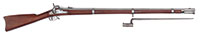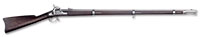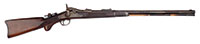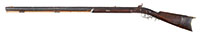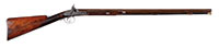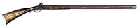 SN NSN. Cal. .595 Groove diameter, 7 deep rounded grooves. 28″ Swamped octagonal bbl is silver inlaid with simple scrolls at breech end and with “Jacob Kuchenreuter” on top flat, which also has gold poincon of horse and rider. Brass rear sight with one folding leaf is dovetailed through, and the date “1795” is engraved in front of sight. Silver front sight is surrounded by more inlaid silver scroll. Round bodied lock with inset pan, friction frizzen, and round bodied serpentine cock, is unmarked. European walnut stock has well done acanthus scroll carving at grip area and behind molded right hand cheekpiece. Fine moldings around lock and flat intricately filed sideplate have fleur-di-lis drop points. A patchbox on right side of butt, with sliding wooden cover, has more relief carving on cover. All furniture is of brass, which is filed with fancy borders. Horn capped stock extends to muzzle and is pinned to bbl. Hickory ramrod is held by brass pipes. PROVENANCE: Collection of Dr. Douglas Sirkin. CONDITION: Good. Bbl and lock are brown and gray patina. Frizzen is a replacement. Stock is sound with numerous scratches and rubs in an old finish, carving somewhat worn, especially at forend. Front 17″ of stock is replaced. There is considerable pitting at touch hole and pan, and a few chips of wood missing at top rear of lock mortise. Rear portion of trigger guard is cracked, and secured by an old screw. Patchbox cover appears to be an old replacement. 4-50087 MGM61 (5,000-7,000) – Lot 3469