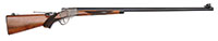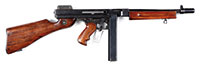 SN 348. 30-06 Cal. 28″ bbl. This Marlin 1897 potato digger comes on a brass tripod with WWII era mounting nut. Marked on top of receiver as well as on matching bbl “MARLIN ARMS CORPORATION NEW HAVEN, CONNECTICUT CAL-30 U.S.A.”. Parts appear to be matching throughout. Mechanism functions smoothly when operated by hand. Rotary belt feed and feed lever articulate properly. This weapon appears fully functional. PROVENANCE: The class III weapons formerly on loan to Evergreen Aviation & Space Museum. CONDITION: Overall finish and appearance is very good with about 50% coverage mostly on front of bbl and top of receiver. Blueing is thin to bare metal on both sides of receiver with a pleasing light brown patina. Wooden hand grip has some dings and wear but is complete and serviceable. Tripod retains 90% of its dark green paint on steel metal surfaces. Rest of carriage retains about 60% coverage with handsome bare brass where gun fits on. Wooden hardware is complete and serviceable with no cracks and retains about 5% of its green paint. Action is very smooth on this digger and gas port is clean. Bore is shiny and bright with strong rifling. Bolt face is extremely fine. This would be a great addition to the collection of a WWI enthusiast who wants to shoot their guns as well as display them. 4-51792 JWK8 (15,000-20,000) – Lot 1000