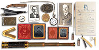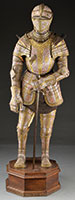 This lovely bronze patinated helmet is one of a series authorized by Henry Cole of the South Kensignton Museum (later the Victoria and Albert Museum) made by Elkington. Developed by Moritz von Jacobi in 1837, electroplating made it possible to copy a work of art to the most minute detail. The helmet or shield was molded in gutta-percha and placed in a solution with electrodes enabling metal to adhere to the mold resulting in an exact copy. In 1867 Cole drew up the “International Convention for Promoting Universal Reproductions of Works of Art”. Elkington pieces were not produced for sale but for exhibition and all were of exceptional quality and produced in extremely limited editions. This helmet’s decorations were designed by the French royal engraver, Etienne Delaune, and depict the glories of the Roman Empire including reliefs of Julius Caesar and Pompeus Magnus. The skull has a high comb embossed in relief with heroic figures, upper and lower visor all embossed, and gorget of two plates embossed with foliage in relief. CONDITION: The helmet is in good overall condition with some repairs and evidence of solder and missing attachments but overall very presentable. Elkington armor, shields and helmets are very collectible and as they were made specially for museum exhibition to a standard so high that “Museum curators cannot tell the difference between the copies and the originals once the copies are placed on display in their glass cases” the copies are the only such pieces likely to appear on the market. The last original such royal Negroli helmet was sold as part of a three quarter armor in 1983 for more than 3,000,000 dollars. 4-53551 (3,000-5,000) – Lot 3475