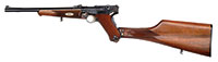 SN 928. 7 mm. 27-3/4″ bbl. This Colt digger is marked “COLT AUTOMATIC GUN BROWNING PATENTS” with standard Colt address and is as manufactured for South America. It is registered as a live gun however the chamber has been plugged with weld, otherwise the mechanism functions smoothly when operated by hand. Visible SN parts match. Feed lever articulates properly and belt advance indexes properly. PROVENANCE: The class III weapons formerly on loan to Evergreen Aviation & Space Museum. CONDITION: Overall finish and appearance is approaching excellent. Over 90% smooth lustrous blue finish thinning where receiver rests on tripod with some mottling of brown patina on left side of receiver. Bbl assembly retains extremely attractive lustrous blue finish. Wooden hand grip has some handling marks but it complete and serviceable. Unable to determine how easily chamber could be restored without actually performing the work but this cataloger is confident chamber could be restored. Bolt face is excellent. As is this is an extremely attractive piece. 4-51720 JWK10 (15,000-18,000) – Lot 1001