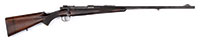 SN T52076. Cal. 22 LR. Beautiful little takedown rifle built on John Browning’s patent with 19-3/8″ rnd bbl, orig front sight and wheel adjusting rear sight. Mounted with spectacular dark European walnut that has skip-line checkered beavertail forearm and pistol grip stock with serrated steel buttplate. Receiver & trigger guard are beautifully deep engraved with large game scene panels on each side surrounded by marvelous, intertwined foliate arabesque patterns that has fine shaded background. Left vignette is of a setter and three pheasants in a woodland scene. Right vignette is a setter and three ducks in a marsh scene and top of receiver depicts a spaniel holding a deceased rabbit. Both side vignettes are signed “Legiers”. Trigger guard is engraved to match and trigger is gold washed. Accompanied by an orig brown canvas & leather burgundy velvet lined Browning case that is compartmented in the bottom for the bbl & receiver. Empty center compartment is probably for a cleaning rod. CONDITION: Appears to be new & unfired. Overall retains 99%+ crisp, orig factory finish to both metal & wood with only a couple of tiny scratches in the wood finish and no other visible flaws. Mechanics are crisp, brilliant shiny bore. Case is equally new. 4-56148 (3,500-5,500) – Lot 2634