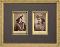 SN 14145 & 6146. Cal. .44 Special. Revolvers are virtually identical with 6-1/2″ bbls, one with Call gold bead front sight and the other with Mr. Keith’s “long range” modified thick front sight blade with two gold bars for distance shooting. Both have round top straps with adjustable sights. Frames are 5-screw type and the cranes have a third fastener in the ejector rod housings. Both have standard color case hardened hammers & smooth triggers. Revolvers are mounted with mirror-image Magna-sized burl walnut 2-pc grips, carved on one side with deep relief “Elmer Keith” and oak leaves, and the other grip with oak leaves. All the carving has a coarse stippled background. Revolver #6146 has a small 5-pointed star by the SN on the buttstrap which indicates factory refinish; Accompanied by a rare double holster rig by the Berns-Martin Co. consisting of left & right hand permanently mounted, full basketweave tooled, front opening spring holsters with thumb straps across the front. They are mounted to a 3-1/2″ wide lined cartridge/money belt that is matching tooled and has a double row of sewn-on cartridge loops for fifty-eight .44/.45 caliber cartridges. Belt has a short, sewn-on tongue billet and a square, cut corner nickeled brass buckle. Rig is completely unmarked. Mr. Keith is pictured on pgs. 150, 162 & 165 of Mr. Keith’s book Six Guns, wearing this exact rig, demonstrating fast draw & shooting. The entire rig, with two 1917 revolvers, is pictured on p. 163 of the referenced publication. The caption to one of the pictures on p. 162 states that one of the revolvers is a Triple Lock .44 Special. These revolvers will letter from Smith & Wesson as follows: #6146 is a first Model hand ejector in .44 Special with 6-1/2″ bbl shipped February 18, 1913 to Lovell Brothers Seal Co. Boston, MA. #14145 is identical shipped December 14, 1917 to Stanbaugh-Thompson Co. Youngstown, OH. PROVENANCE: The Elmer Keith Estate Collection. CONDITION: #6146 is very fine to extremely fine. Overall retains 96-97% strong, deep, restored factory blue with light muzzle end & some sharp edge wear. #14145 is extremely fine. Overall retains 97-98% crisp orig blue with very light muzzle end & sharp edge wear and a light cylinder line. Triggers & hammers on both revolvers show strong case colors. Both sets of grips extremely fine showing little or no use. Mechanics of both revolvers are crisp & sharp with fine-tuned actions and 2-1/2 to 3 lb triggers. Holsters & belt are very fine to extremely fine showing very light wear with solid cartridge loops. The thumb strap snap on left holster has separated from its base. 4-48016 JR246 (6,000-10,000) – Lot 1020