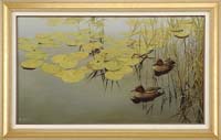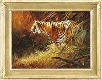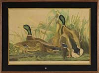 PAIR OF GOULD & RICHTER HUMMINGBIRD PRINTS. 1) “Thaumastura Enicura”. Print shows three hummingbirds on a pink flowering leafy plant. Bottom left “J. Gould & H. C. Richter Del et Lith”. Bottom right “Hullmandel & Walton, Imp”. 2) “Loddigesia Mirabilis”. Print shows three fancy hummingbirds with double tails on a yellow blossoming cactus. Bottom left “J. Gould & H. C. Richter Del et Lith”. Bottom right “Walter & Cohn, Imp”. Both identically housed in black gold edge wood frames with white mattes. SIZE: Sight: 20-1/4″ x 13-1/4″. PROVENANCE: From the private collection of Dorothy-Lee Jones. CONDITION: Not examined out of frame, some toning, generally good. 9-23240 (400-600)