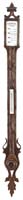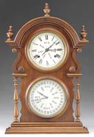 CUSTOM ROUND TABLE & MIRROR. 1) Late 20th century. Queen Anne style mahogany & brass mirror having a circular top with simulated brass cleating joined to a turned shaft raised on a tripod cabriole leg base with brass capped feet. 2) Second half of the 20th Century architectural Rococo carved mahogany & giltwood mirror. This nice custom example with a rectangular beveled mirror plate with notched corners within a egg-and-dart gilt slip, within a mahogany frame, surmounted by a displayed giltwood eagle beneath a ribbon-tied floral crest flanked by gilt sheaf of wheat. The apron with a stylized floral wreath. The frame sides cast with gilt filets. SIZE: Table: 30″ h x 28-1/2″ dia. Mirror: 39-1/2″ h x 17-3/4″ w. CONDITION: Table is very good; Mirror in very fine original condition. 9-20485, 9-20488 (200-400)