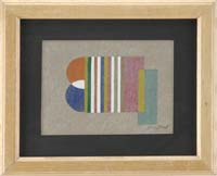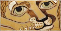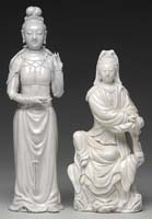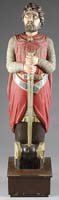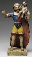 TWO PIECES OF ANTIQUITY. Including earthenware polychrome painted head, possibly pre-Columbian, and a turquoise glaze ushabti Egyptian tomb figure on stand. SIZE: Head: 9″ x 6-1/2″. Ushabti: 4″ h. PROVENANCE: From the private collection of Dorothy-Lee Jones. CONDITION: Head with old split at back of head. Holes drilled at back of top. Painted surfaces appear original and faded. Ushabti appears original with old split and repair across lower body at knees. 9-23219 (600-900)
