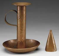 PAIR OF QUEEN ANNE BRASS CANDLESTICKS AND COPPER TRANSFER PLATE. Late 18th and mid 19th century. Each push up candlestick with petal form footed base and with scalloped bobeche. Engraved copper plate for Willowware transfer decoration in the Oriental taste. Also engraved in corner “IRON STONE CHINA” on banner. SIZE: Candlesticks: 8-3/4″ h. Plate: 10-3/4″ x 10-1/2″. PROVENANCE: From the private collection of Dorothy-Lee Jones. CONDITION: Candlesticks with normal and expected minor denting and scratching. Plate with roughness resulting from use. Otherwise both good. 9-23274 (300-500)