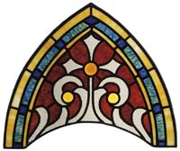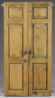INTERESTING & COLORFUL APPLIQUE EGYPTIAN MOTIF DOOR SURROUND. First quarter of the 20th Century. Meant as a decorative surround for a door opening. The top having a spread wing eagle motif with each side having opposing Egyptian figures with medallion heads & flower panels, SIZE: 105″ l x 62″ w. CONDITION: Very good. 9-23014 (500-800)