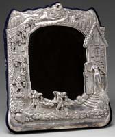 SILVER CLAD SEATED RABBIT MARKED “GW”. First half 20th century. Heavy sterling clad figure with incised mark of “G” within “W” and also stamped “925”. SIZE: 4-1/2″ h. CONDITION: Very good overall. No damages or imperfections noted. 9-23119 (200-300)
