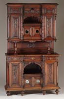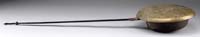 GORHAM STERLING FANCY SERVER. Fabulous handled serving piece has a tapered round handle with small bead decorated end. It is attached to a spear shaped bowl which has engraved design. At the top of the bowl where it meets the handle is a cast lion head in nice detail. It is marked “S & M Sterling 17” with Gorham hallmarks. No monogram. PROVENANCE: From a fine southern Maine home. WEIGHT: 3 tr. oz. SIZE: 12-1/4” l. CONDITION: Very good. 9-74399 SM (200-400)