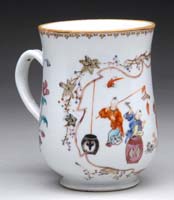 INTERESTING DUTCH SILVER TOY CUP. The bell shaped cup decorated with a landscape scene including windmill, farm and people. The top section above the cup has a articulating windmill with flag which serves an unknown purpose, a man walks up a ladder to the house and a bird sits atop. Probably late 19th Century. SIZE: 7-1/2” h. CONDITION: Good. 9-90052 SM (100-200)