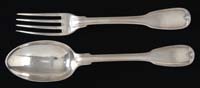 SET OF DECORATIVE SPOONS AND PLACE CARD HOLDER SET. Set of six 5” figural spoons, five with matching face decorated bowls and having decorative finials; unmarked along with a spoon marked “W.C” with English hallmarks (London 1891). Along with a set of twelve figural silver place card holders hallmarked, probably French with different figures atop in pairs. WEIGHT: 7 troy oz. CONDITION: Generally very good. 9-74404 SM (200-400)