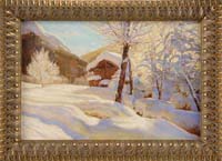 EMILE ALBERT GRUPPE (American, 1896-1978) WINTER SPLENDOR. Outstanding large oil on canvas winter scene shows sunlight brightening a snowy forest floor beyond a forest pool and trees in shadows. Wonderful colors and superbly rendered. An outstanding example of Gruppe’s use of light and shadows. Signed lower right. Housed in a fine carved gilt molded wood frame. SIZE: 30” x 36”. CONDITION: Very good. 9-74904 FP (20,000-30,000)