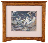 WAYNE BEAM MORRELL (American, 1923-) “CAPE ANN VISTA”. Oil on wall paneling scene shows colorful New England homes with a harbor ocean view beyond. The back is written “From the artist studio by Wayne Morrell 1987”. Housed in a gilt molded wood frame with linen liner. PROVENANCE: Rankin Estate, Annapolis, Maryland. Purchased from Main Street Arts & Antiques Gloucester, Massachusetts, 1988. SIZE: 9” x 12”. CONDITION: Very good. 9-29697 SM (500-1,000)
