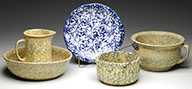 TWO PORCELAIN PIECES. 19th, early 20th century, China. Celadon wares. A “Kuan” style bowl with a crab claw crackle and impressed character on the bottom together with a shallow narcissus bowl. SIZE: 1) 5″ dia. 2) 7-1/2″ dia. CONDITION: With crackle as noted, very good overall. 7-73208 (200-300)