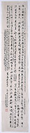 CALLIGRAPHY HANDSCROLL. China, Weng Tonghe (1830-1904), calligraphic writing of a prose in running style, dedicated to “Ziyi shi’er xiong Nian da ren,” signed, with two artist’s seals and two collector’s seals. SIZE: 13-1/4″ x 51″. CONDITION: Good with minor stain & creases. 7-73490 (300-500)