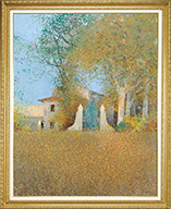 WILLIAM CHADWICK (American, 1879-1962) “HOUSE ON THE HILL”. Oil on canvas Housed in ornate carved and composite burnished gold frame, with losses Signed “W. Chadwick”, lower right Identified on verso on the Cooley Gallery label, Old Lyme, CT. Artist clippings also on verso SIZE: 16″ x 20″. Overall: 22″ x 26″ PROVENANCE: The John F. Gale Collection, Cambridge, MA CONDITION: Light craquelure, otherwise very good 9-27304 (6,000-9,000)