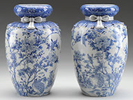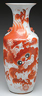 PAIR OF PORCELAIN VASES. 19th century, China. Rouleau form. Surface covered with coppery persimmon glaze. SIZE: 5-1/4″ h. CONDITION: Generally good. 7-73407 (100-150)