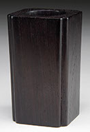BRUSH POT. Early 20th century, China. Square rosewood brush pot with notched corners. SIZE: 4-1/2″ h. CONDITION: Very good. 9-27594 (400-600)