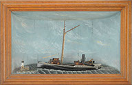 ERIC HUDSON (American, 1864-1932) “SCHOONER…” ON HIGH SEAS. Oil on canvas Housed in a period cove style bronze painted frame which is cut down with repairs Signed “Eric Hudson”, lower right Identified on stretcher and on fragmentary period label on verso SIZE: 24-1/2″ x 28-1/4″. Overall: 31-1/2″ x 35-3/4″ PROVENANCE: The John F. Gale Collection, Cambridge, MA CONDITION: Thick impasto with craquelure 9-27316 (7,000-10,000)